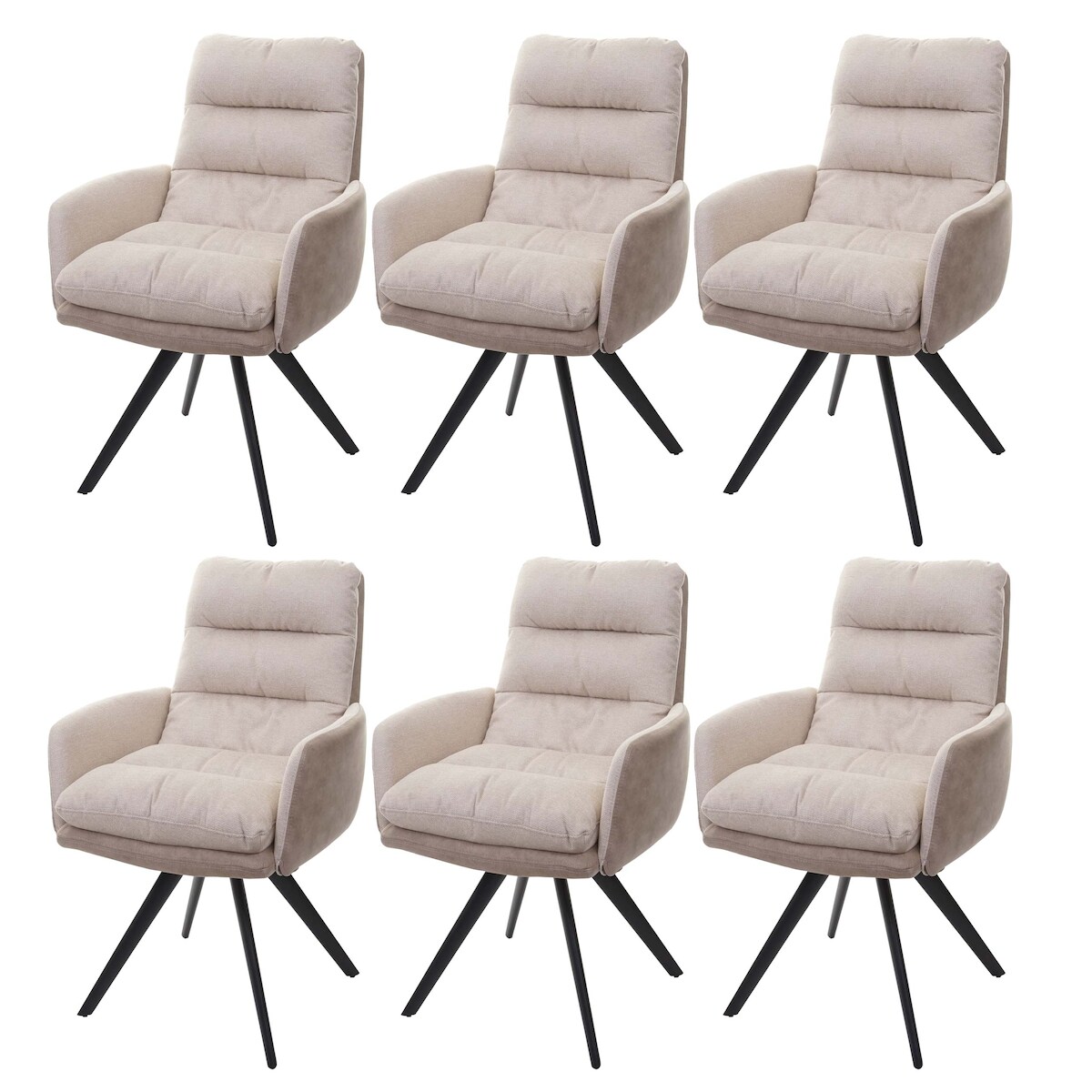 Mendler 6er-Set Esszimmerstuhl HWC-G66, Küchenstuhl Stuhl, drehbar Auto-Position Stoff MVG ~ creme, mit Armlehne