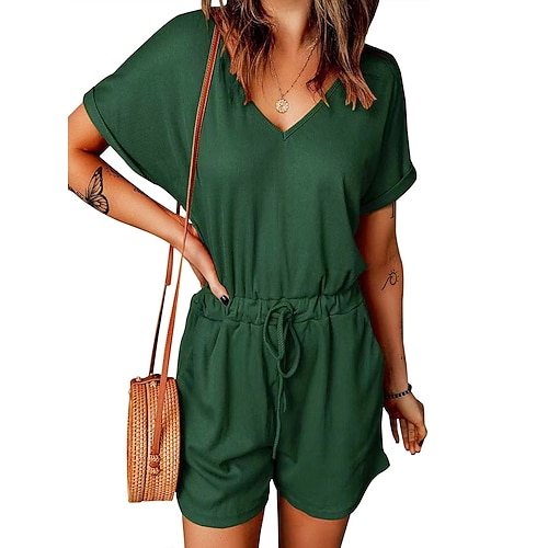 Per donna Normale Pagliaccetto Attivo Tinta unica Manica Corta Pantaloncini larghi Scollo a V Tasca Con Cintura Quotidiano Vacanza Vestibilità regolare Vino Blu marino Viola Estate