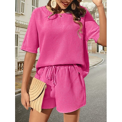 Per donna Set da due pezzi Set di Pantaloncini Bolero Top Manica Corta Girocollo Tinta unica Coulisse Elegante Moda Streetwear Casuale Quotidiano All'aperto Nero Bianco Rosa Estate Vestibilit