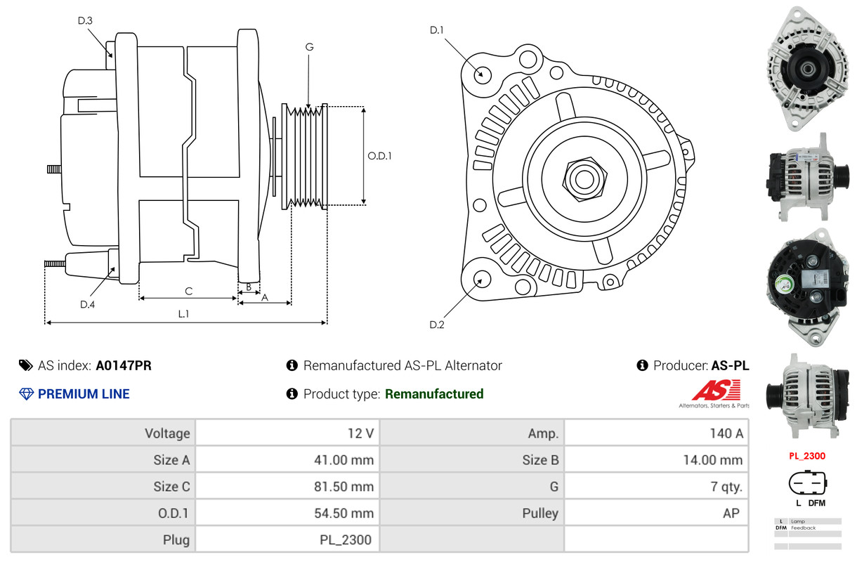 AS-PL Generator A0147PR 12V 140A für FIAT DAF IVECO 2995390 5801377162 71723401