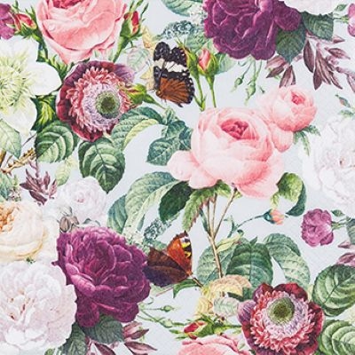 Home Fashion®, Wild Roses, Lunch-Servietten aufgefaltetes Maß 33 cm x 33 cm, im Viertelfalz, 20 Stück pro Pack