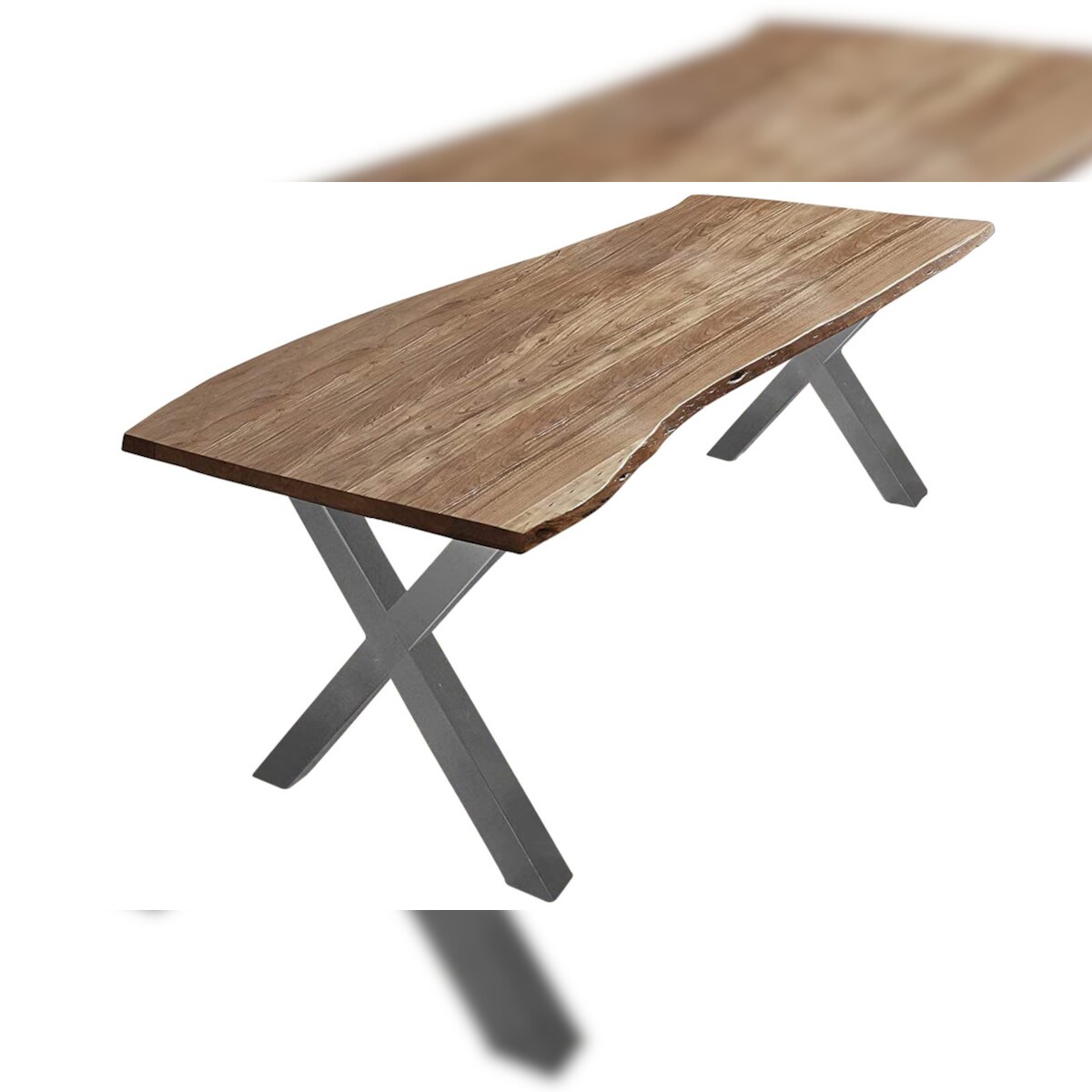 SAM® Esstisch Baumkante massiv Akazie natur 240 x 100 X-Gestell silber XAVER