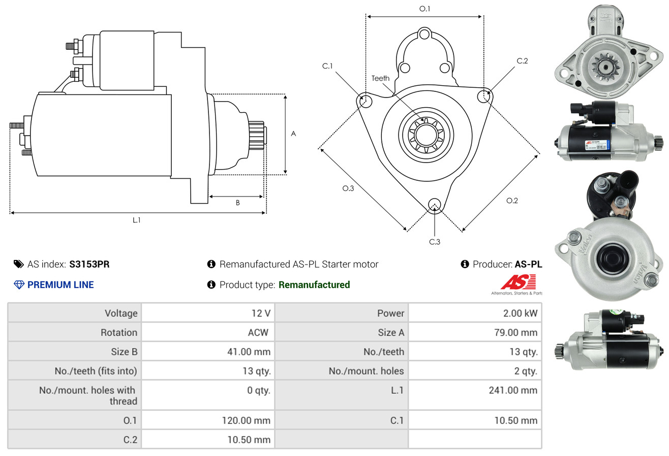 AS-PL Starter S0686PR 12V für VW 2T911023D 02T911023GX 02T911023G