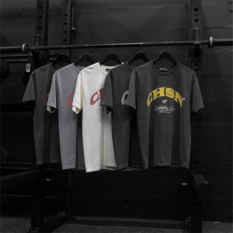 Men 2024 Loose Chosenfew athletics Sports Gym T-shirt Summer Cotton Men Fitness Bodybuilding Workout Short Sleeves Tees Tops cm