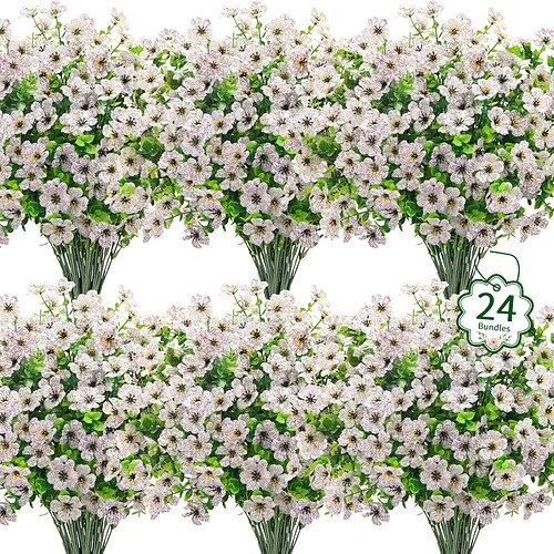 24 mazzi di fiori artificiali per esterni, fiori di lavanda finti, erba cipollina, piante finte in plastica, arbusti resistenti ai raggi UV per veranda, giardino, finestra, ufficio, decorazioni per la
