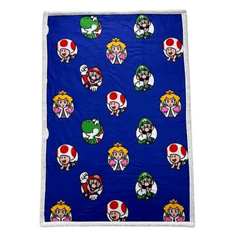 WT&T Plaid Sherpa 100x150 cm Mario Yoshi Peach Rotary