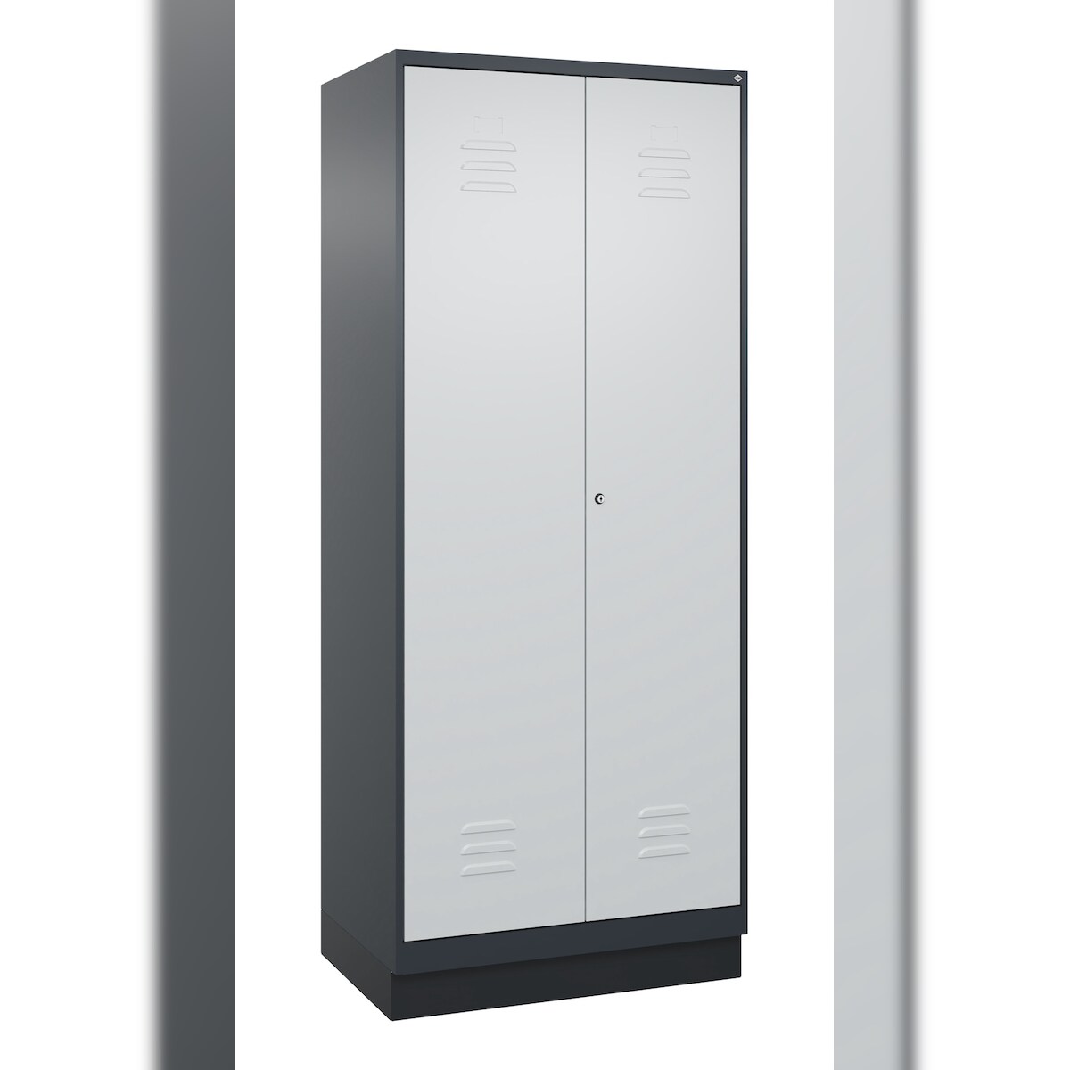 5er-Schließfachschrank Classic PLUS, 2 Abteile, lichtgrau / fernblau, B 600 mm, 10 Fächer, mit Bodengleitern C+P
