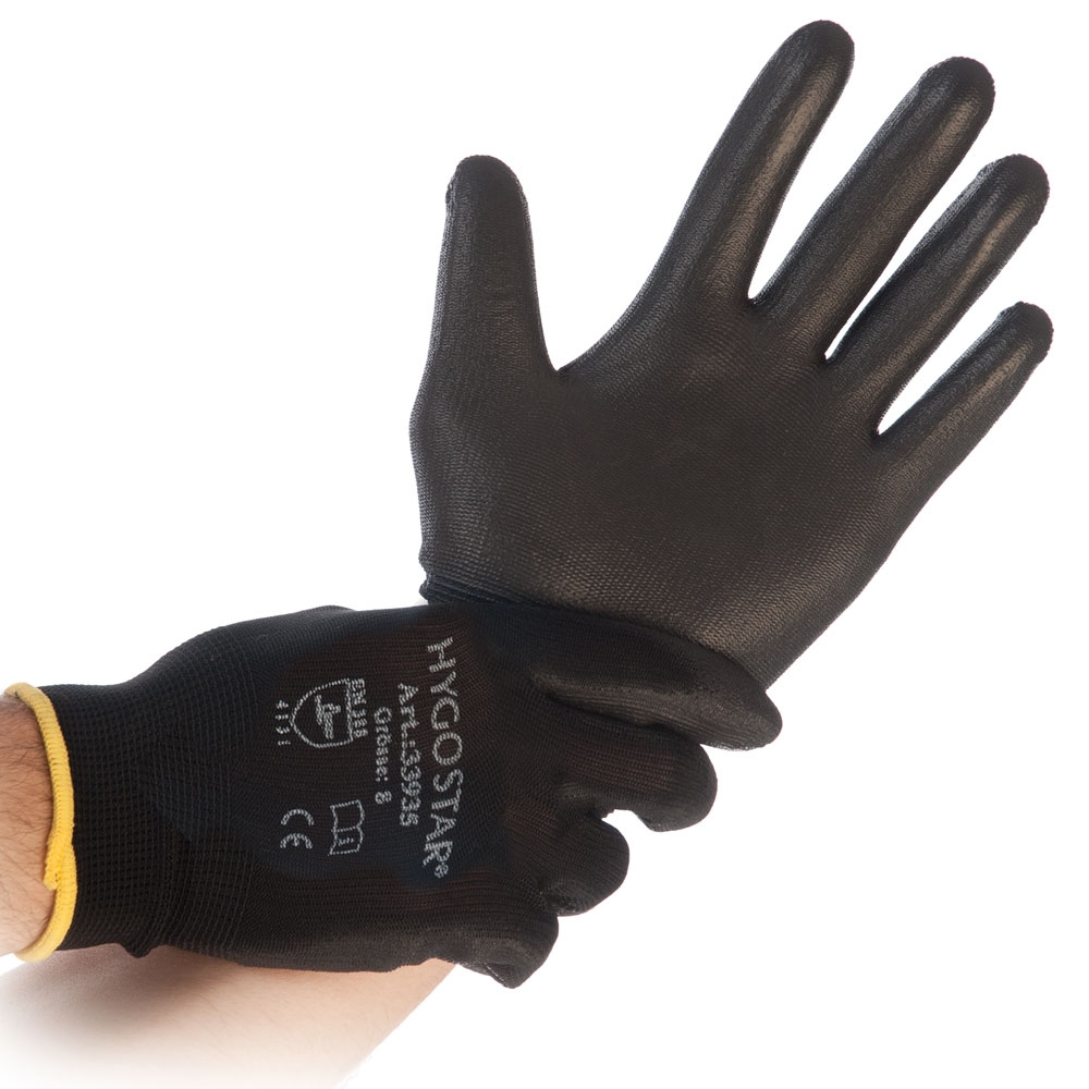 10x12 Paar Arbeitshandschuhe "Black Ace Comfort" 3/4-beschichtet Gr. XL/10 Schwarz Länge: 26 cm Handschuhe Sicherheitshandschuhe