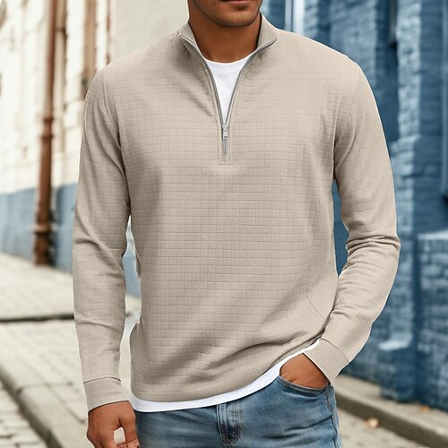 Per uomo Magliette Polo a Nido d'Ape Testurizzato All'aperto Casual Zip a un quarto Manica Lunga Moda Moderno Tinta unica Testurizzato Lavorato a maglia Primavera Autunno Tutte le stagioni