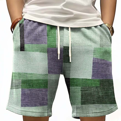 Per uomo Geometrico Blocco di colori Patchwork Pantaloncini Waffle Pantaloncini da tuta Pantaloncini casual Misura del girovita medio Moda Casual Vacanza Jogging Allenamento Testurizzato Coulisse
