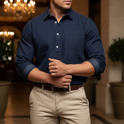 Per uomo Camicia popover Camicia Oxford Rosa Blu marino Blu scuro Grigio Azzurro Manica Lunga Semplice Testurizzato Colletto italiano visibile Casuale All'aperto Tasca Abbigliamento Neutro Moda