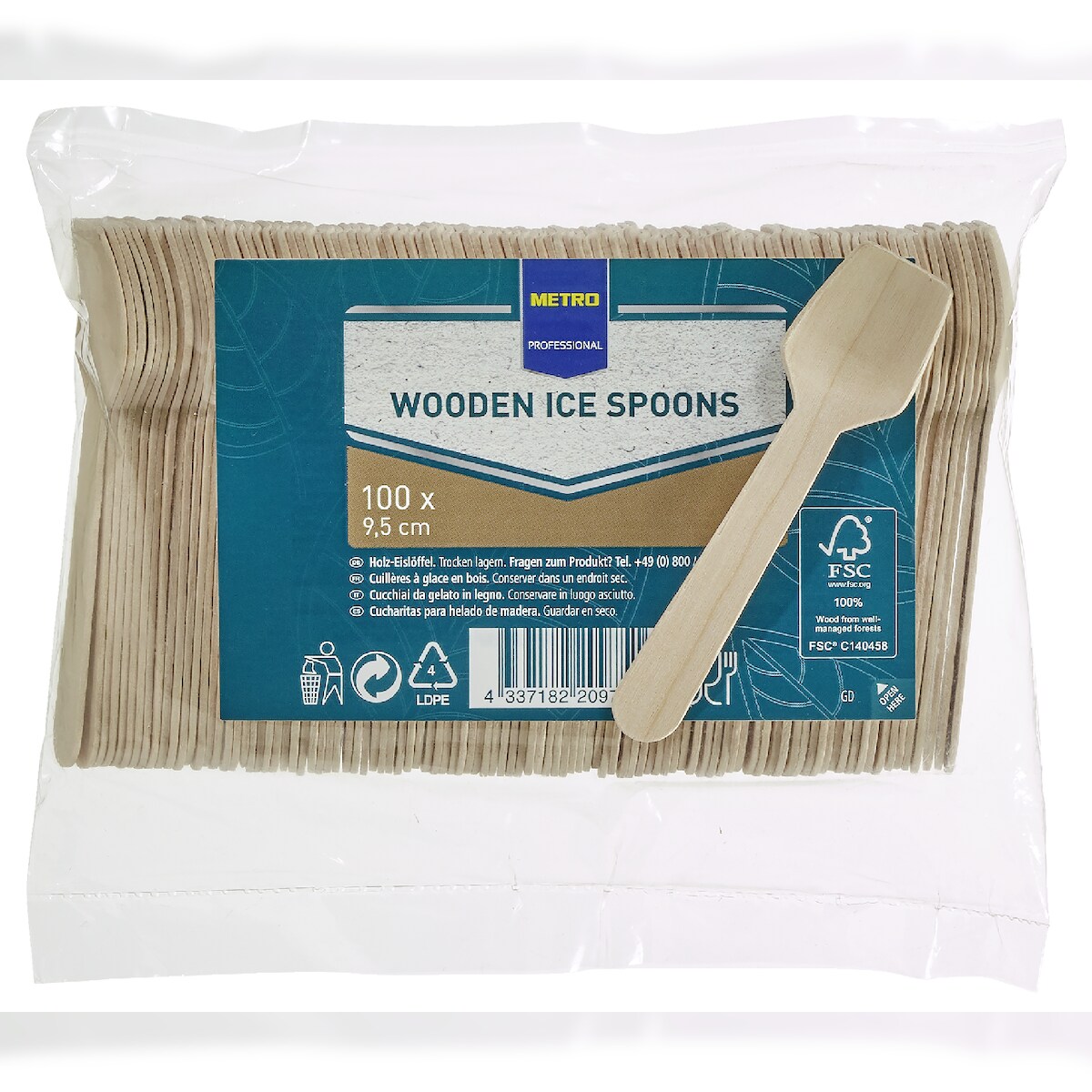 METRO PROFESSIONAL Einwegeislöffel, Holz, bioabbaubar, 9.5 cm, 100 Stück