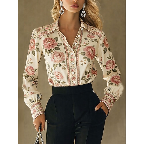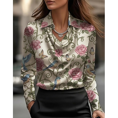 Per donna Camicia Bottoni Stampato Floreale Attivo Quotidiano Elegante Manica Lunga Colletto a Camicia Top Regolari Quotidiano Ferie Blu Bianco Rosa Blu marino Verde Primavera Autunno