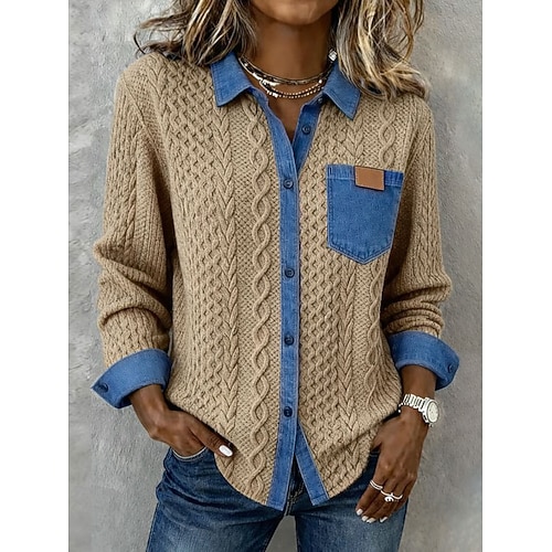 Per donna Camicia casual Camicia con Bottoni Blusa Patchwork Bottoni Tinta unica Semplice Quotidiano Elegante Classico Manica Lunga Collo ripiegato Top Regolari Ferie Abbigliamento mare Abbigliamento