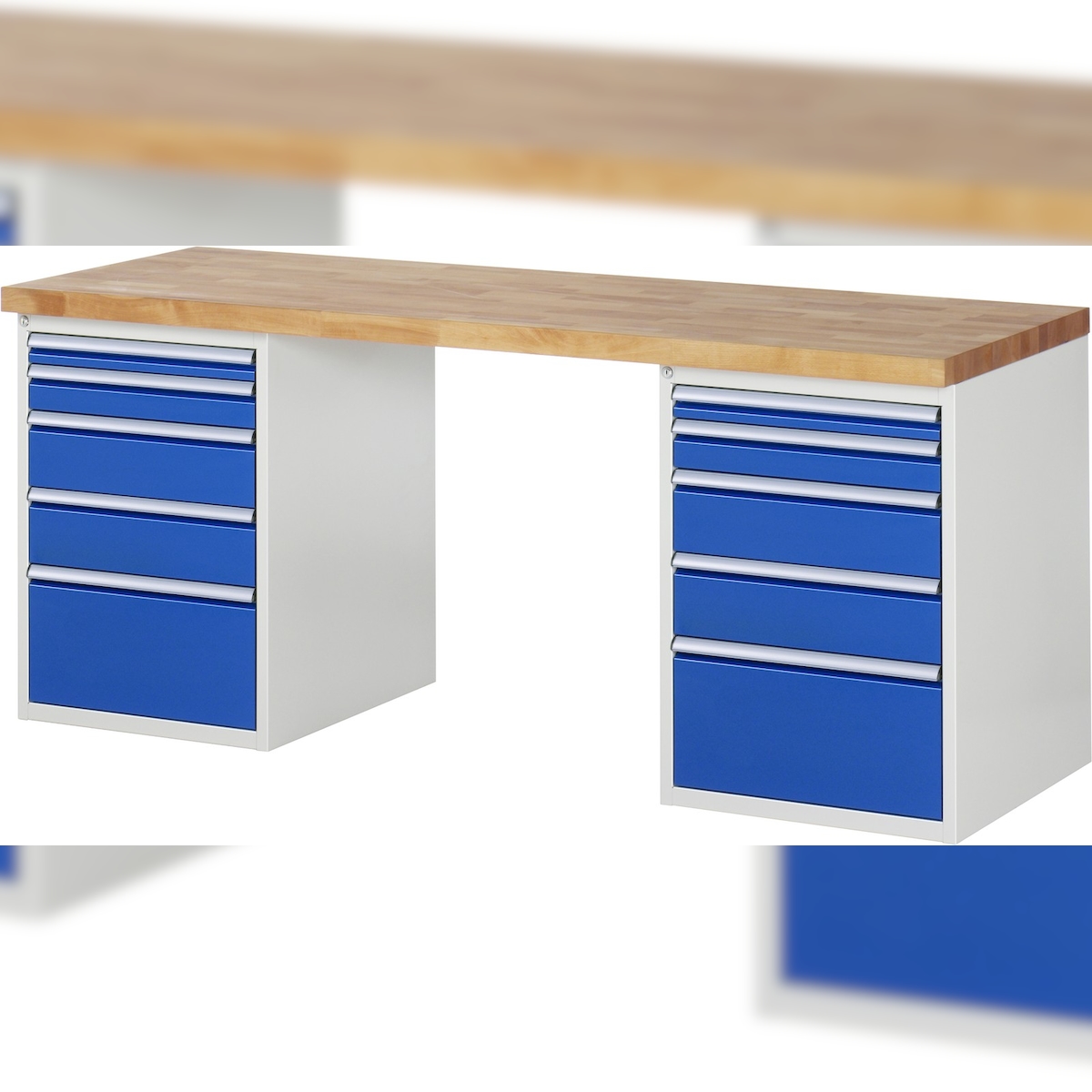 PROREGAL Werkbank Serie 7000 - Modell 7132 | HxBxT 79-114x250x90cm | 8x Schublade | Schubladenmaße 2x60 + 4x90 + 2x120mm