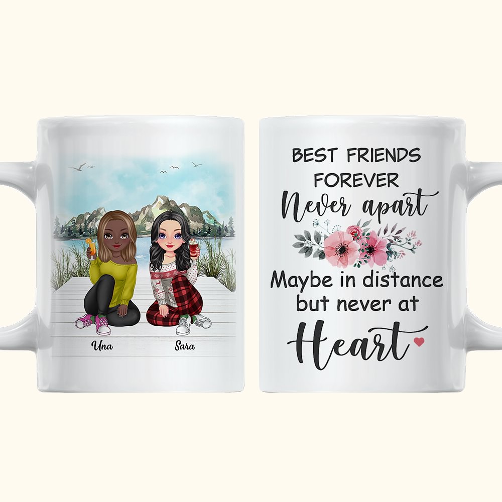 Taza de cerámica personalizada Best Friends Never Apart Mountain Lake View White Bestie Regalos para mujeres para la oficina y el hogar