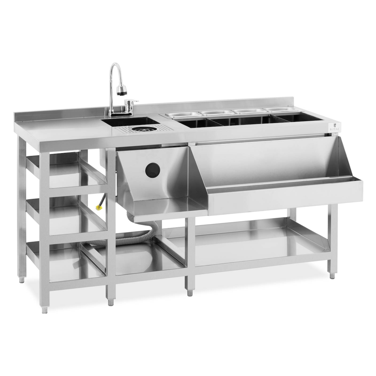 Royal Catering Cocktail-Station - mit Eisbehälter, 4 GN 1/9 Behälter, Glasspüler und Flaschenhalter -