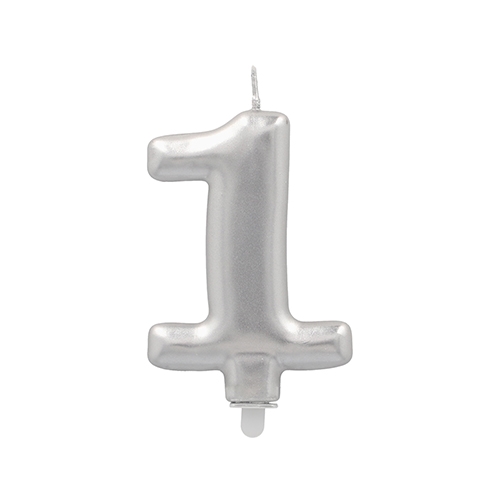 Papstar 12 Zahlenkerzen mit Halter 7 cm silber `1`