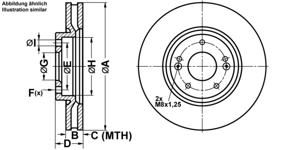 ATE Bremsscheibe 24.0111-0125.1 vorne rechts links voll 230,0mm für HYUNDAI KIA 51712-02100 51712-02000 51712-02110