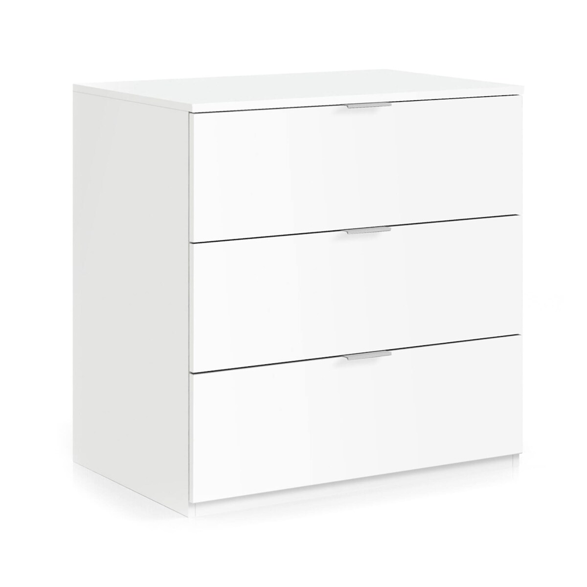 Dmora Schubladenblock Bridgeport, Moderne Kommode mit 3 Schubladen, Niedrige Kommode für Schlafzimmer, Mobil wöchentlich, 77x38h80 cm, Weiß