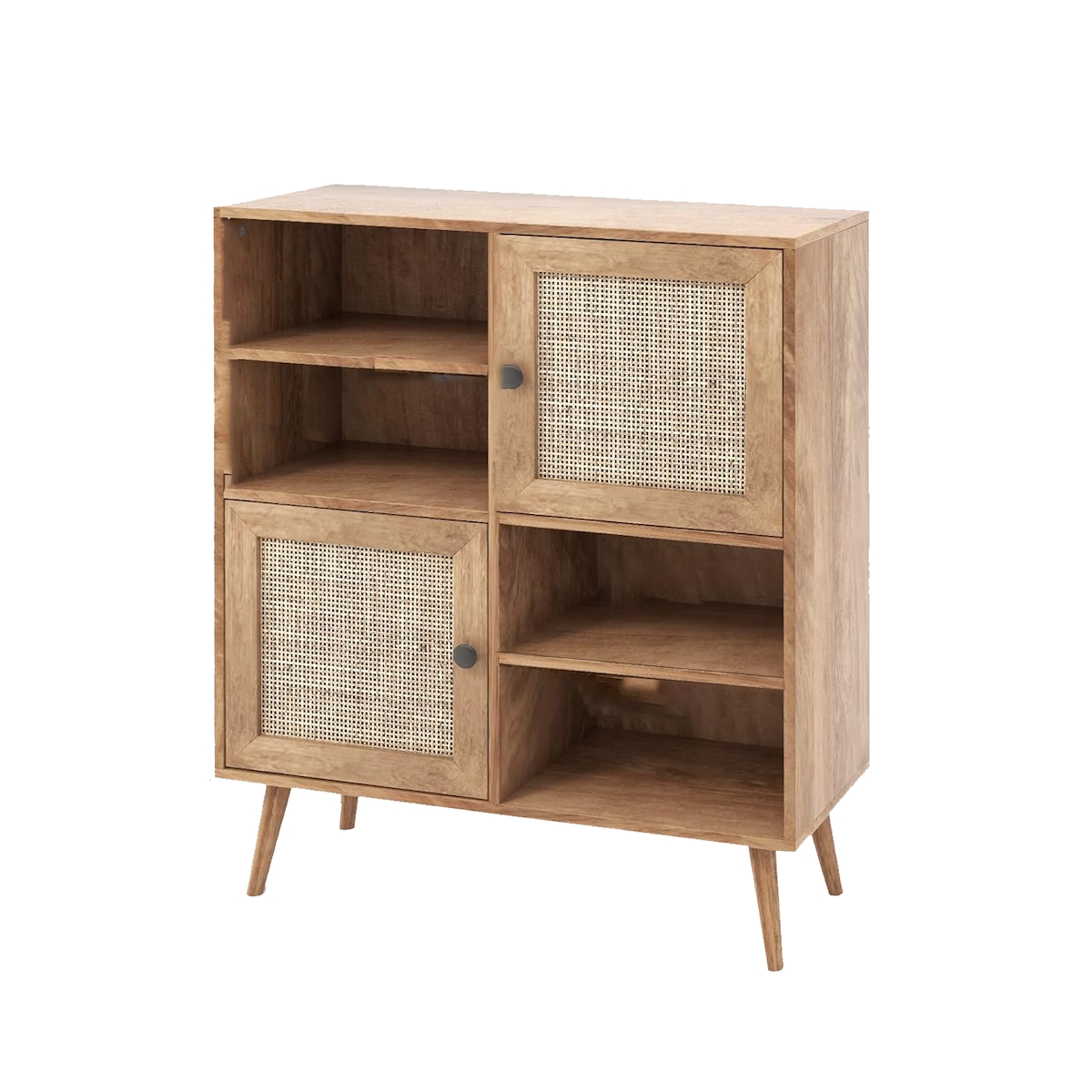 COSTWAY Rattan-Holz-Sideboard, Kommode mit 2 Rattan-Türen und 4 offenen Fächern, Küchenschrank, Sideboard