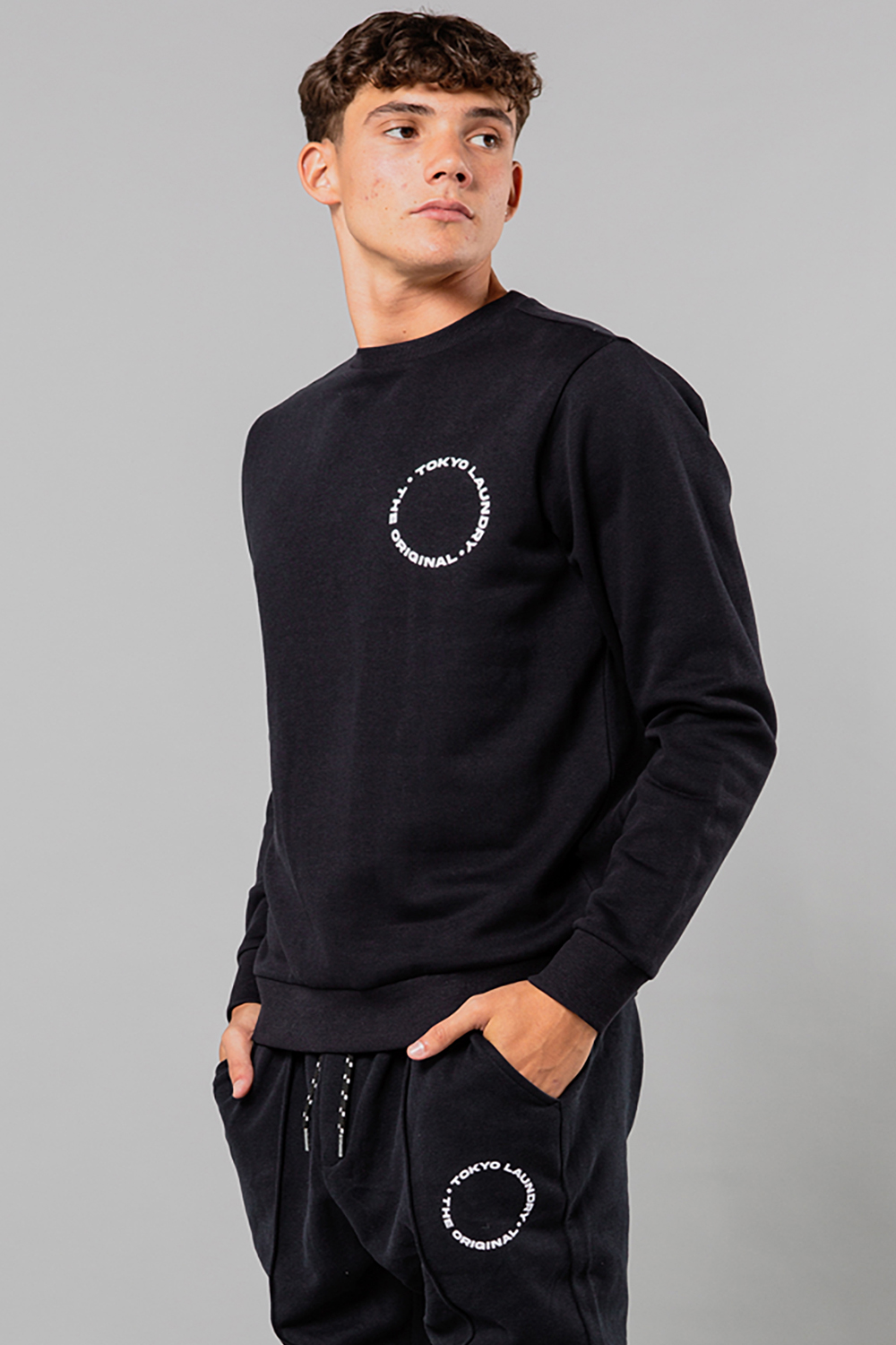 Tokyo Laundry Mens Navy Crew Neck Jumper With Logo Print - Size Medium | Tokyo Laundry Sale | Discount Designer Brands