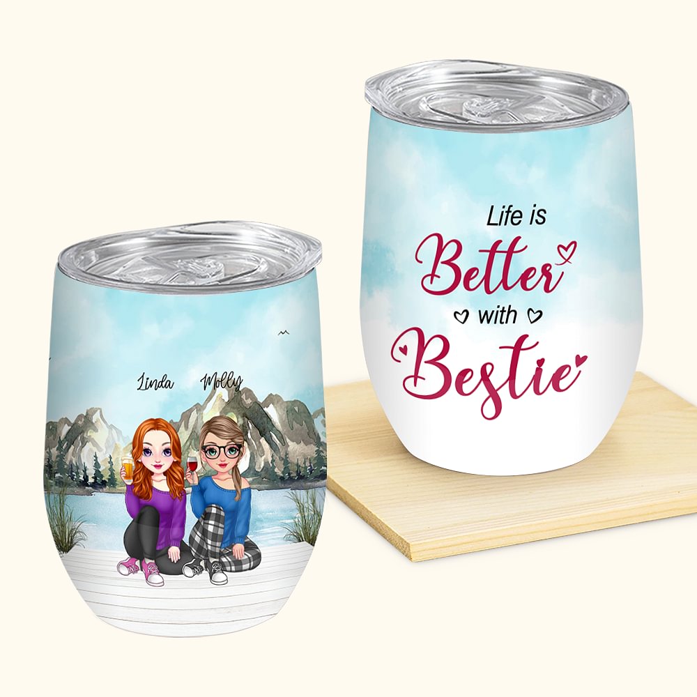 Personnalisé Life Is Better With Besties Beach Vacation Wine Tumbler Friendship Gift (La vie est plus belle avec les copines)