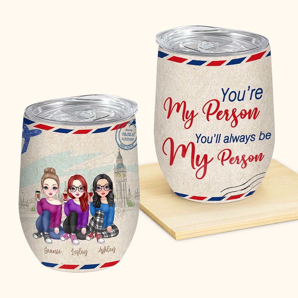 Personalizzato You'll Always Be My Person Traveling Around The World With My Bestie 12oz Wine Tumbler Regalo per le sorelle