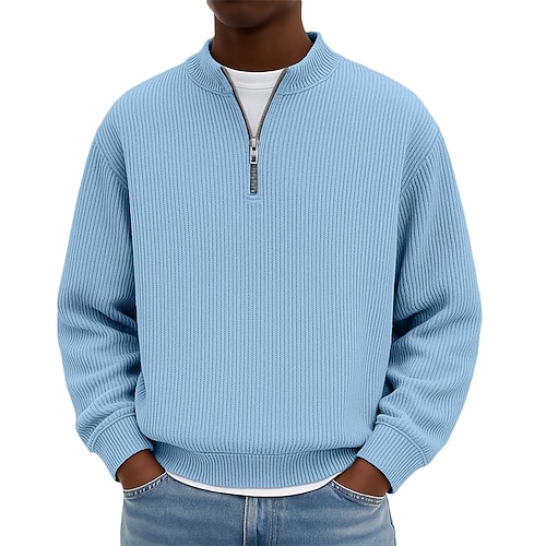Per uomo Maglia Felpa in pile Maglione Felpa con zip corta Nero Bianco Blu marino Caffè Mezza zip Semplice Jacquard Sport Outdoor Casuale Quotidiano Streetwear Essenziale Casual Autunno Inverno