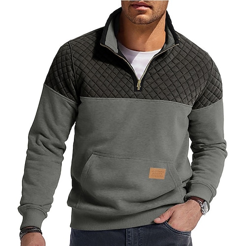 Per uomo Maglia Felpa a nido d'ape Maglione Felpa con zip corta Blu Verde militare Borgogna Marrone Cachi Colletto Mao Semplice Patchwork Blocco di colore Testurizzato Sport Outdoor Casuale
