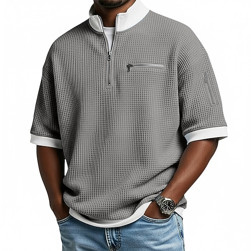 Per uomo Maglietta Waffle Maglietta Manica Corta Maglione Mezza zip Estate Tinta unica Moda Designer Confortevole Patchwork Blocco di colore Tasca con cerniera Casuale Quotidiano All'aperto Blu