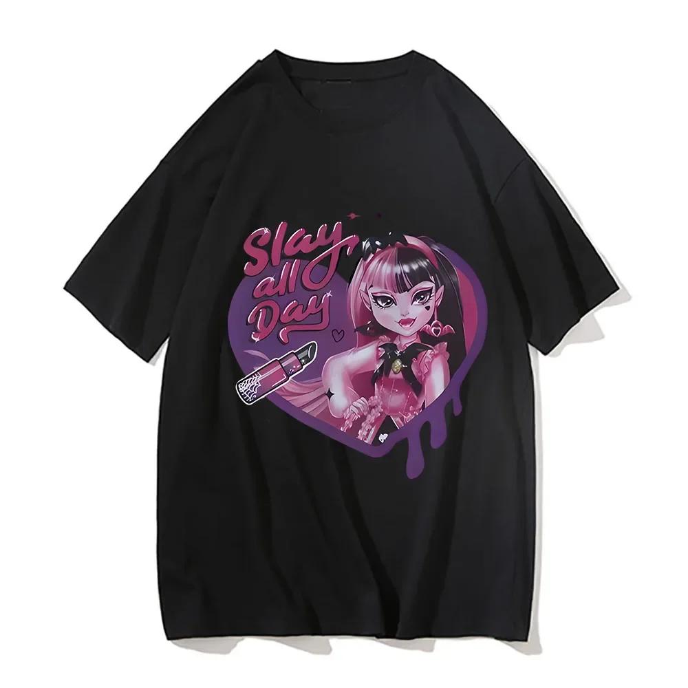 M-Monster High Harajuku Casual Anime T-shirt Manga T-shirt Söt Tecknad T-shirt Tryck Kvinnor Kortärmad T-shirts cm
