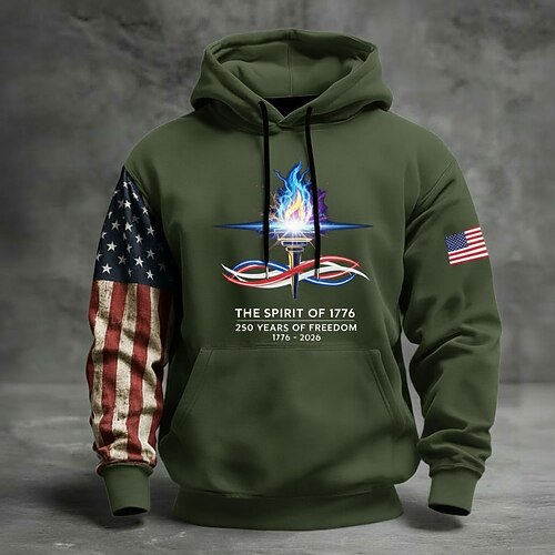250° anniversario dell'America Per uomo Felpa con Cappuccio Felpa con cappuccio Festival Nero Blu marino Cachi Verde militare Stampa 3D Inverno Primavera Autunno progettista S M L XL 2XL 3XL