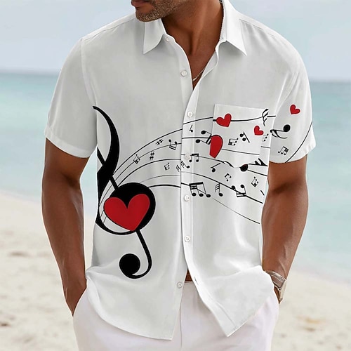 San Valentino Per uomo Note Musicali A cuore Camicia Camicia Estiva Camicia con Bottoni Manica Corta Moda Casual Regalo Ferie Estate Primavera Collo ripiegato Stampa 3D camicie con colletto Una tasca