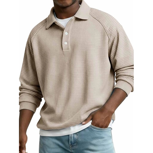 Per uomo Polo da Golf Polo a Maglia Waffle Casuale Affari Colletto Polo a Coste Manica Lunga Moda Essenziale Tinta unica Testurizzato Lavoro a maglia Primavera Autunno Inverno Vestibilità regolare