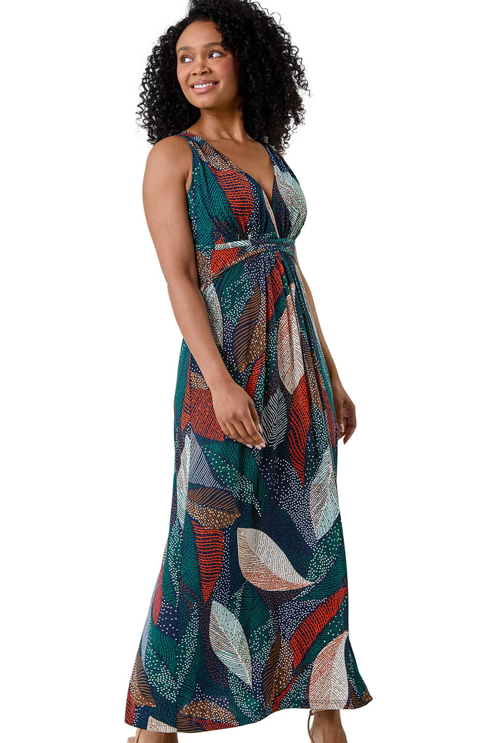 Roman Womens Petite Leaf Print Stretch Maxi Dress - Multicolour - Size 14 UK | Roman Sale | Discount Designer Brands