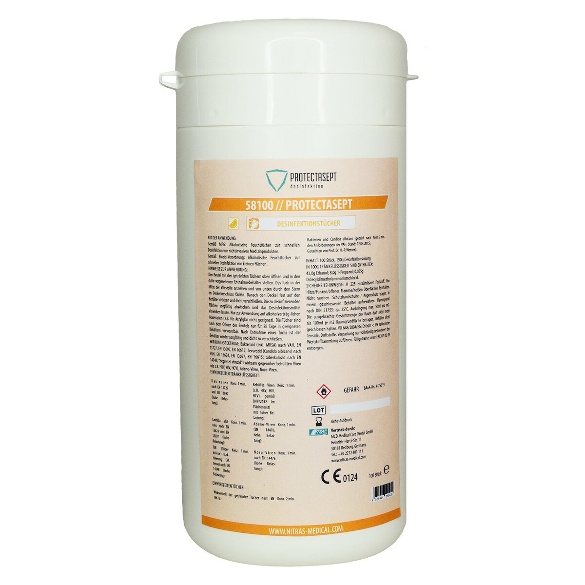 Nitras Desinfektionstücher 58100, Protectasept- gebrauchsfertig VAH gelistet 100 Stück pro Dose 100 Stück