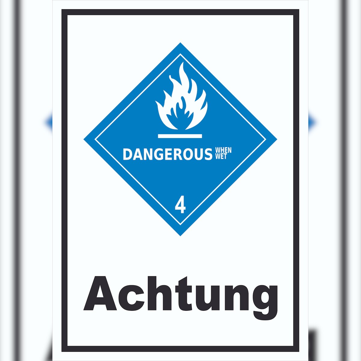 HB-Druck Schild wasserreaktive Stoffe Achtung Dangerous when wet hochkant A4 Rückseite selbstklebend