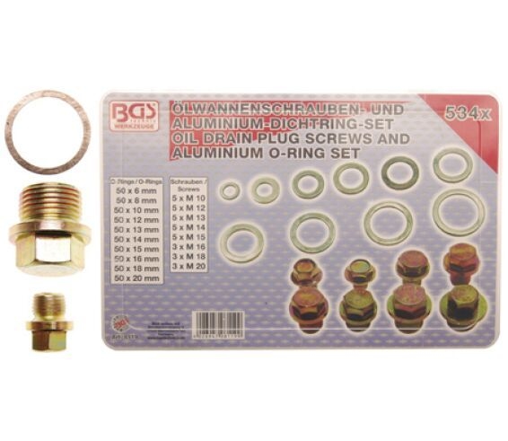 BGS technic 8119 Ölablassschrauben und Aluminium Dichtigring Set 534tlg