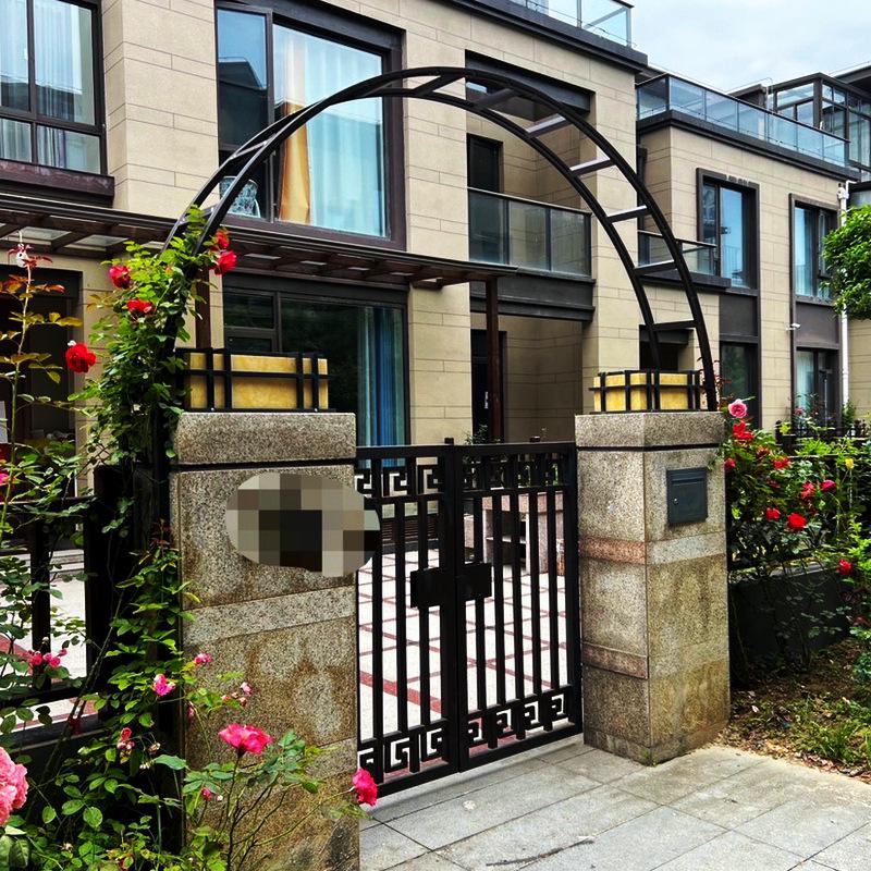 Support à fleurs en arc semi-circulaire en fer forgé et treillis pour support de porte de cour