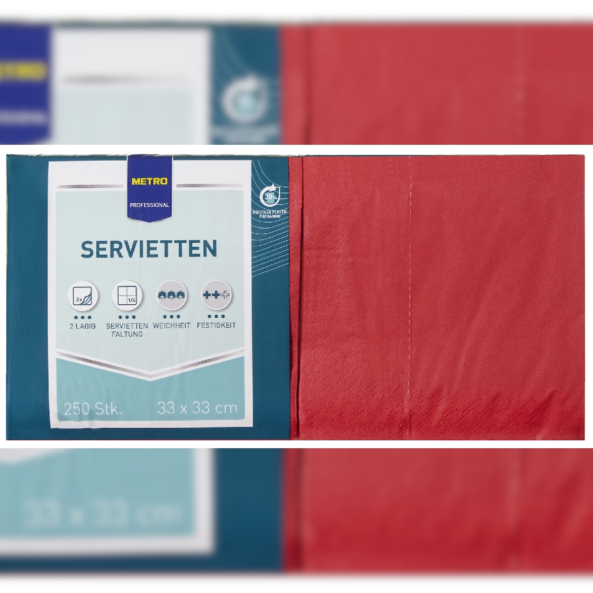 METRO Professional Servietten, 2-lagig , 33 x 33 cm, 1/4 Falz, rot, 250 Stück