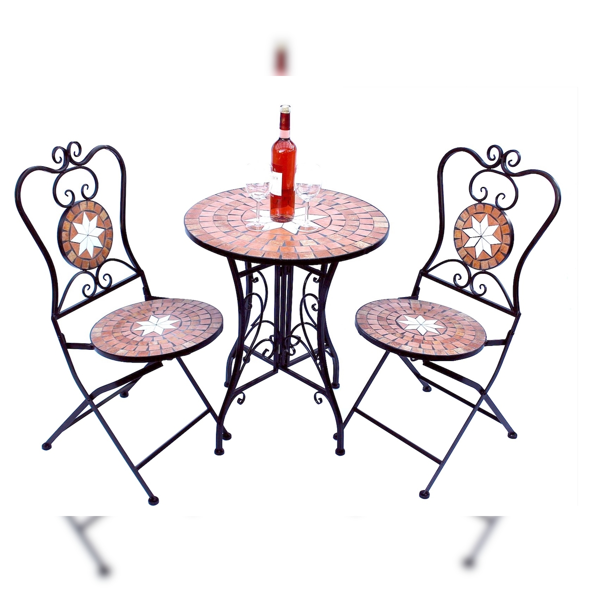 DanDiBo Sitzgruppe Merano 12001-2 Gartentisch + 2 Stk. Gartenstuhl Mosaik Tisch 2x Stuhl