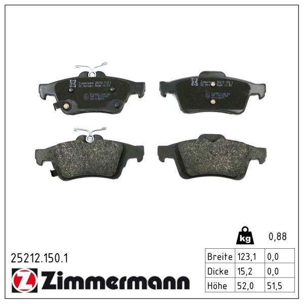 ZIMMERMANN Bremsbelagsatz, Scheibenbremse 25212.150.1 hinten rechts links Foto entspricht Lieferumfang für FORD G1FY2M008AC GN1Z-2200D G1FY2M008AB