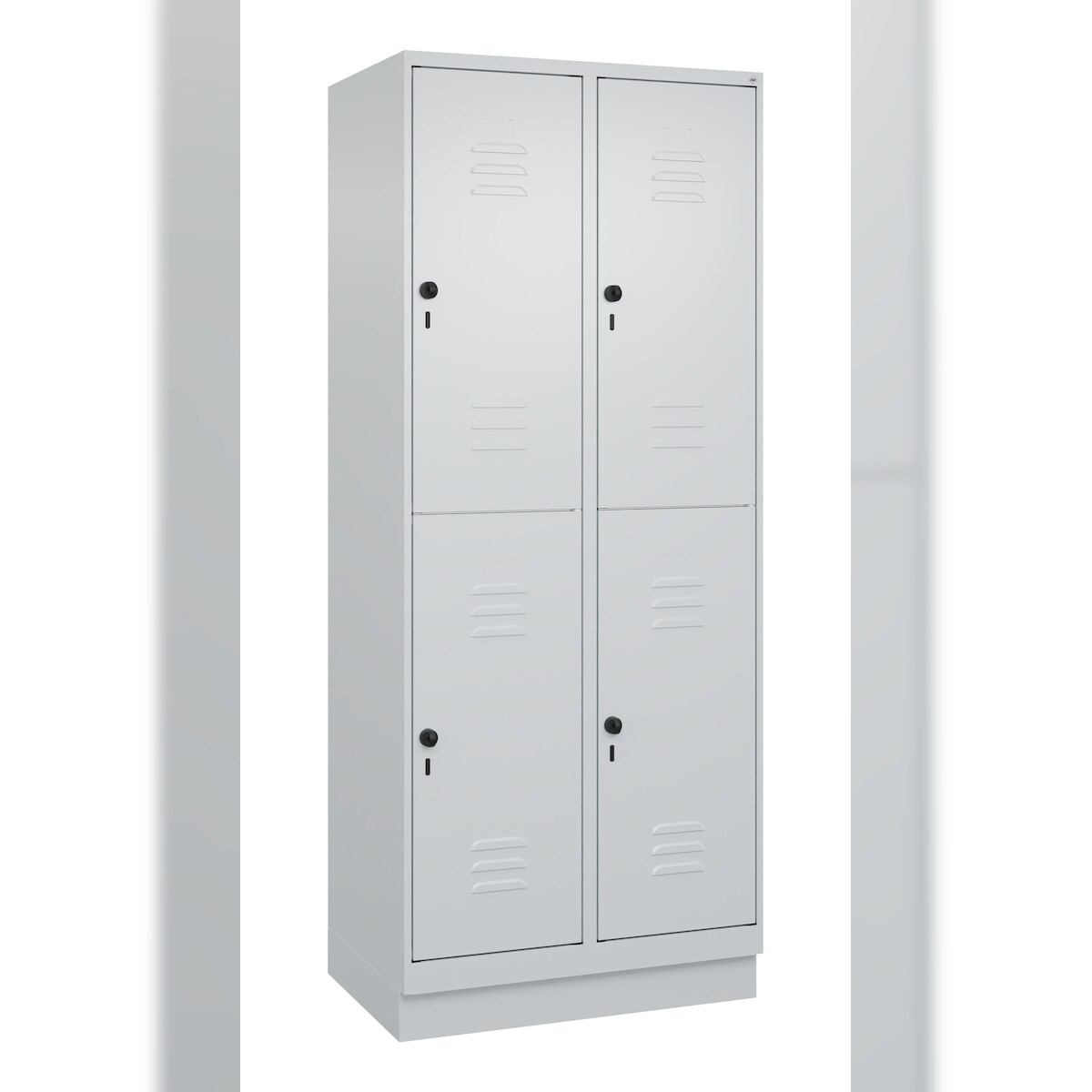 C+P Doppel-Spind Classic PLUS, Sockel, 4 Abteile, HxBxT 195x120x50cm, Sicherheitsdrehriegel, Hellgrau/Hellgrau von PROREGAL