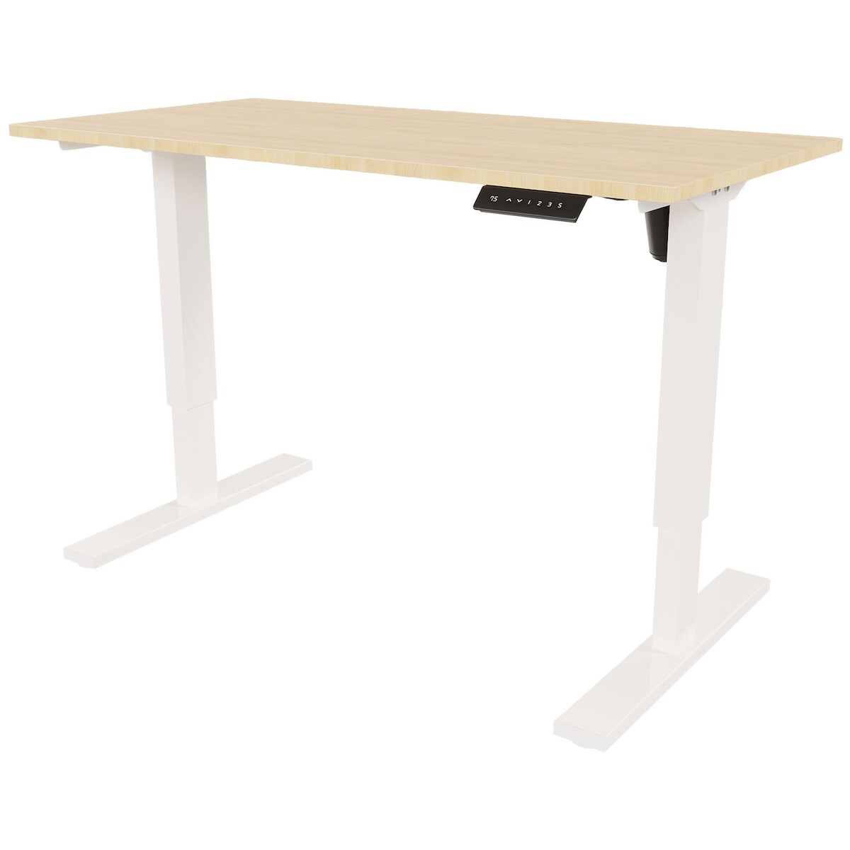 bümö höhenverstellbarer Schreibtisch 160 x 80 cm in Ahorn, Gestell weiß - Höhenverstellbar Elektrisch Stehpult mit 3-fach Speicher, Computertisch,