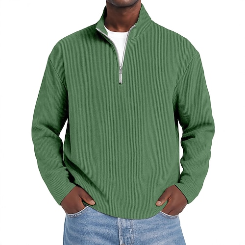 Per uomo Camicia di Velluto a Coste Testurizzato Casuale All'aperto Zip a un quarto Manica Lunga Moda Moderno Tinta unica Caldo Velluto a coste Autunno Primavera Autunno Autunno Inverno