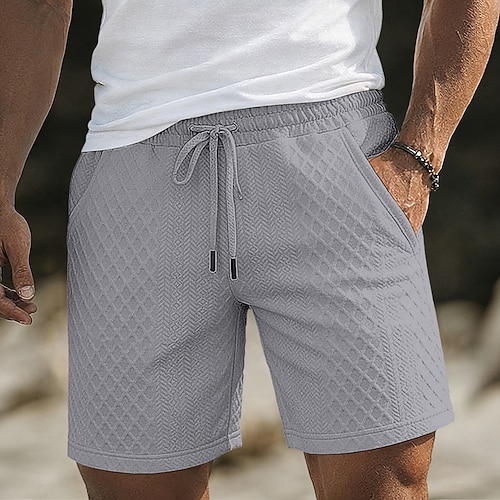 Per uomo Shorts Pantaloncini Estivi Shorts da Spiaggia Pantaloncini casual Coulisse Elastico in vita Testurizzato Tinta unica Comodità Traspirante Corto Quotidiano All'aperto Ferie Vacanza Moda Nero