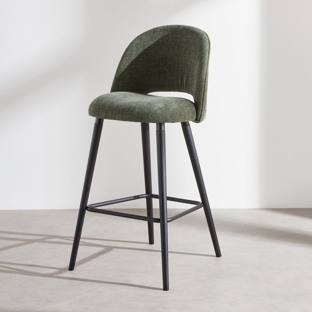 Sgabello da bar in tessuto verde e legno di hevea nero alt. 80 cm