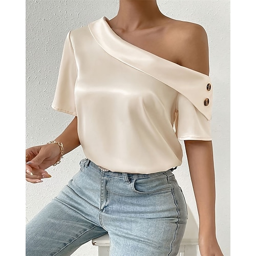 Per donna Top estivi Blusa Top Eleganti Tinta unica Semplice Elegante Vintage Signore Manica Corta Asimmetrico Top Regolari Quotidiano Lavoro Ferie Arricciato Patchwork Bottoni Albicocca Estate
