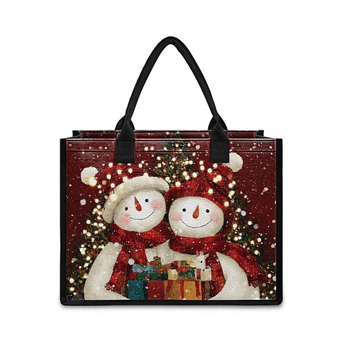 Borsa tote da donna con stampa di pupazzo di neve natalizio, borsa a tracolla in tela di grande capacità, borsa per lo shopping natalizio da donna